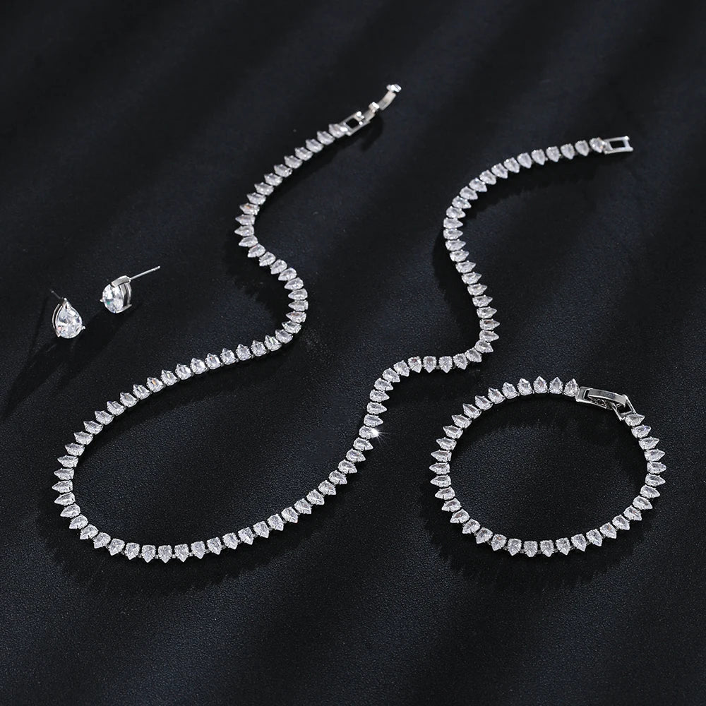 The Riviera set — featuring a necklace, bracelet, and earrings — is an elegant and harmonious combination of jewelry pieces. Known for its continuous rows of gemstones or crystals, this set showcases a sophisticated and timeless design. Each piece is carefully crafted to create a stunning visual effect, offering a luxurious and glamorous look.